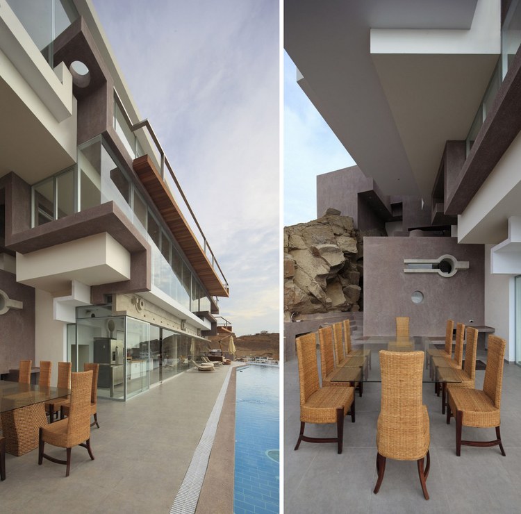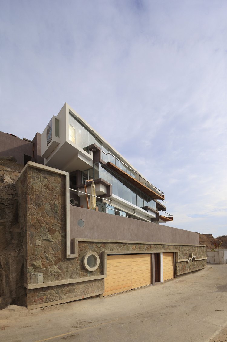 別墅設計,維羅妮卡海灘別墅(Veronica Beach House)秘魯一向以其美食和音樂而聞名,我們希望通過本次的設計可以使其建筑同樣受到人們的關注,所以我們決定拋開理性的設計思路,而采用更加奔放自由的設計理念,并將當地文化、歷史等元素融入其中,而這也是我們在秘魯設計項目一貫遵循的原則。