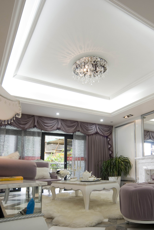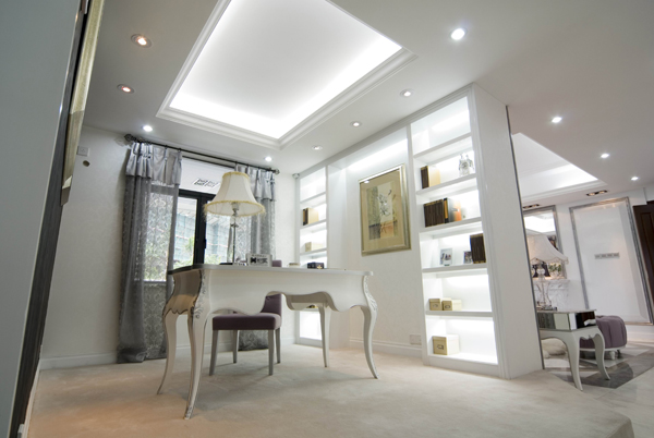 再結(jié)合華麗 古典的歐式家具.高貴的水晶吊燈,更顯出本示范位單的國際品位。希望使你置身于一個(gè)白色的王國里 ,成為童話里的主角。