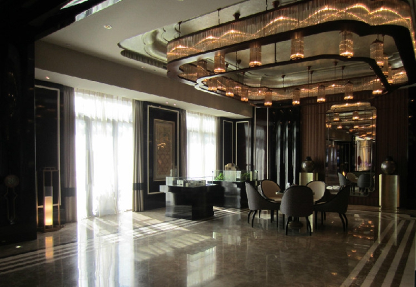 金山御景龍庭別墅裝修設計: 御景龍庭總建筑面積約23萬平方米,占地面積約12.88萬平方米。御景龍庭公寓由3幢25層和6幢18層的高層組成。整個別墅區總規劃有3聯、4聯、6聯共155套別墅,別墅是賴特草原風格,其特點是大坡頂、大面積落地窗、入戶回廊、多重露臺。